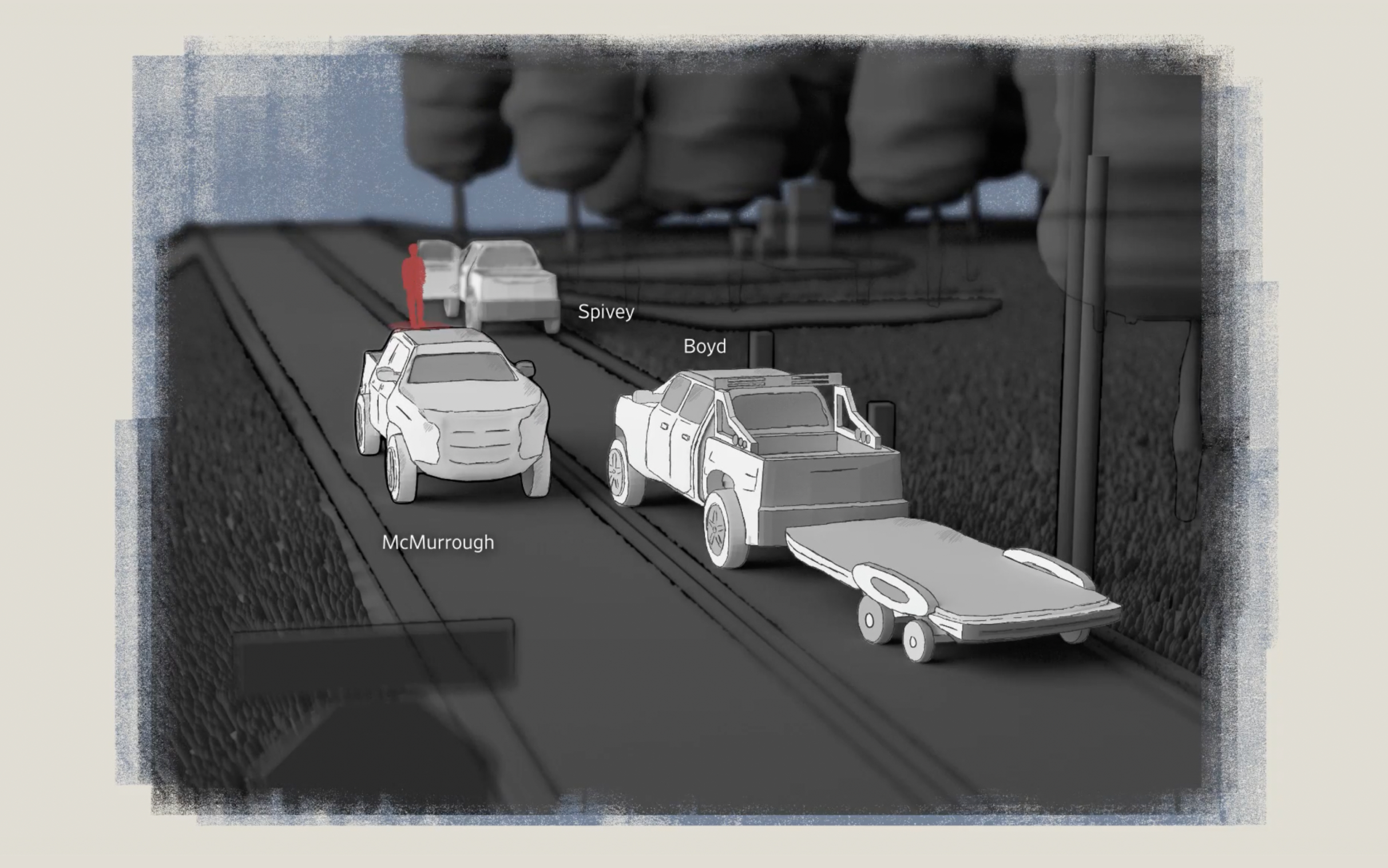 Full page design, art direction, typography, interaction design, and illustration for a visual investigation analyzing several hundred hours of bodycam footage from the killing of Scott Spivey, initially declared by authorities as a self-defense case — a decision under scrutiny by a special investigator after WSJ’s investigation.